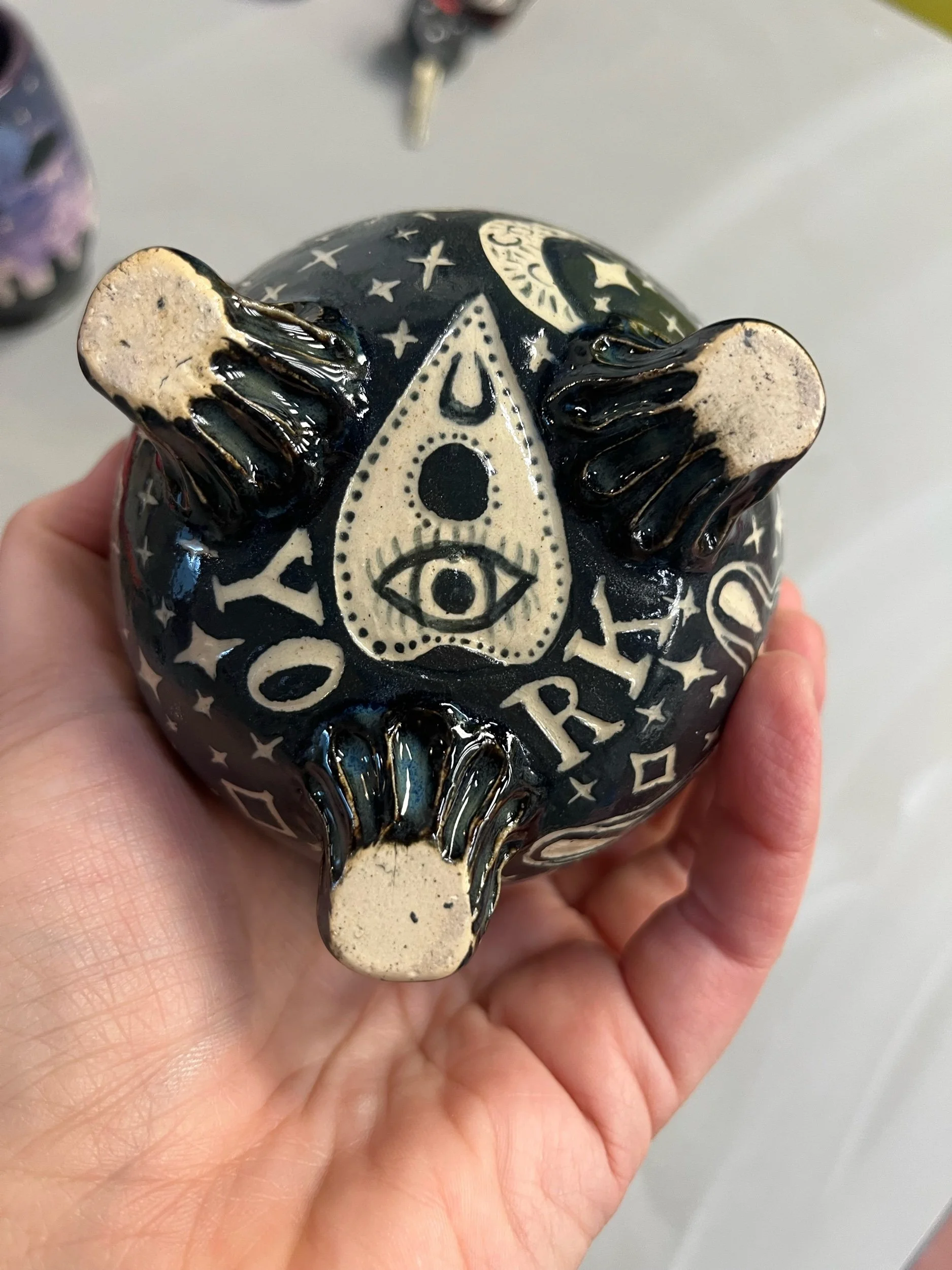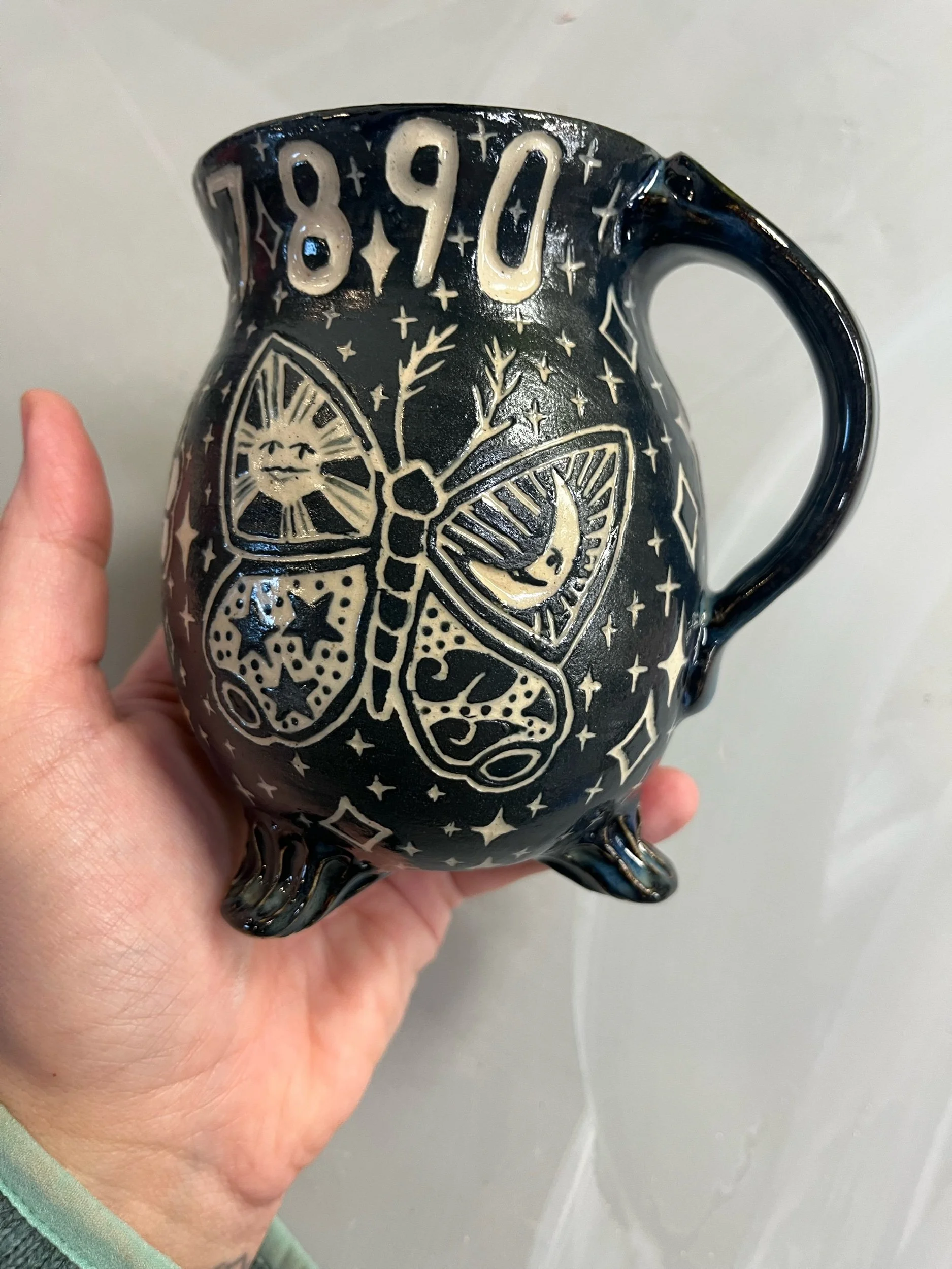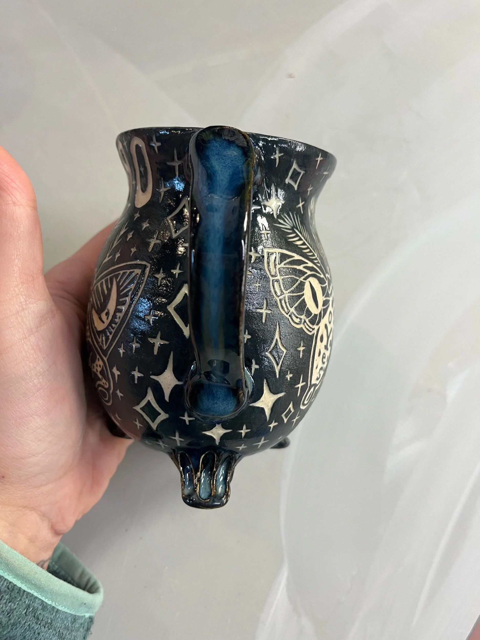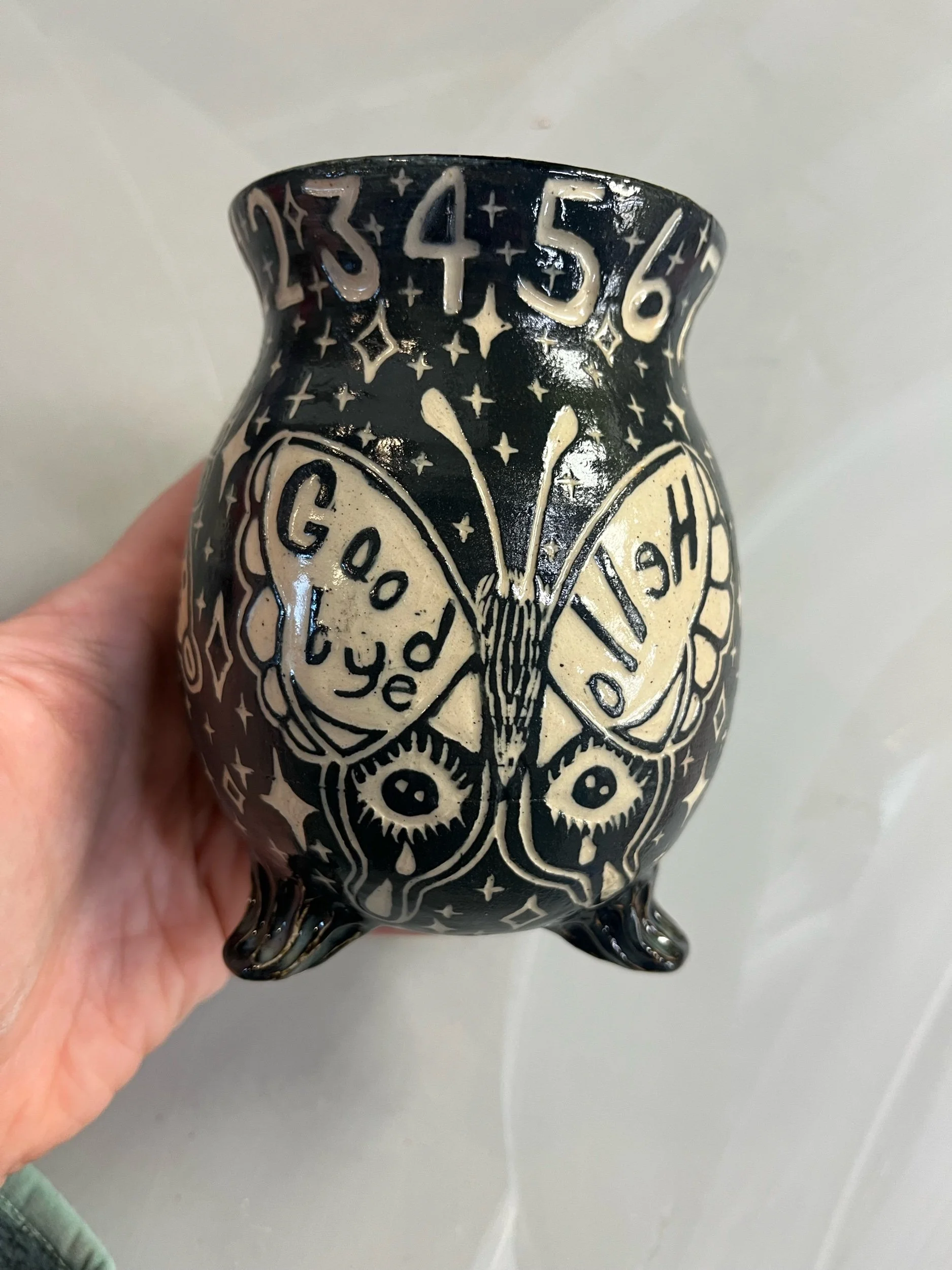 Shop › Hello? Can you hear me?? Image 1 of 5 Image 2 of 5 Image 3 of 5 Image 4 of 5 Image 5 of 5 Hello? Can you hear me?? $85.00 Ouija board inspired mug with little cauldron feetSafe to use in the microwave and dishwasher. Quantity: Purchase Added! Ouija board inspired mug with little cauldron feetSafe to use in the microwave and dishwasher.